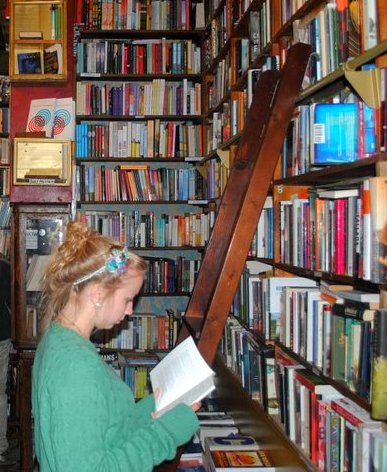 Sonia exploring in Powell’s Books, Portland, Oregon – the largest independent used and new bookstore in the world. [June 2015]